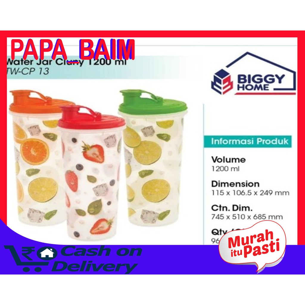 .TEMPAT MINUM 1200 ML WATER JAR CLUNY BIGGY HOMETEKO 1PCSKapasitas 1,2 literMatrial plastik grande anti tebelMotif Buah seperi di gambarProduk home biggyTersedia warna:- Ungu- Merah- hijauSAAT INI READY HANYA BOTOL MINUMNYA SAJA TIDAK TERMASUK G