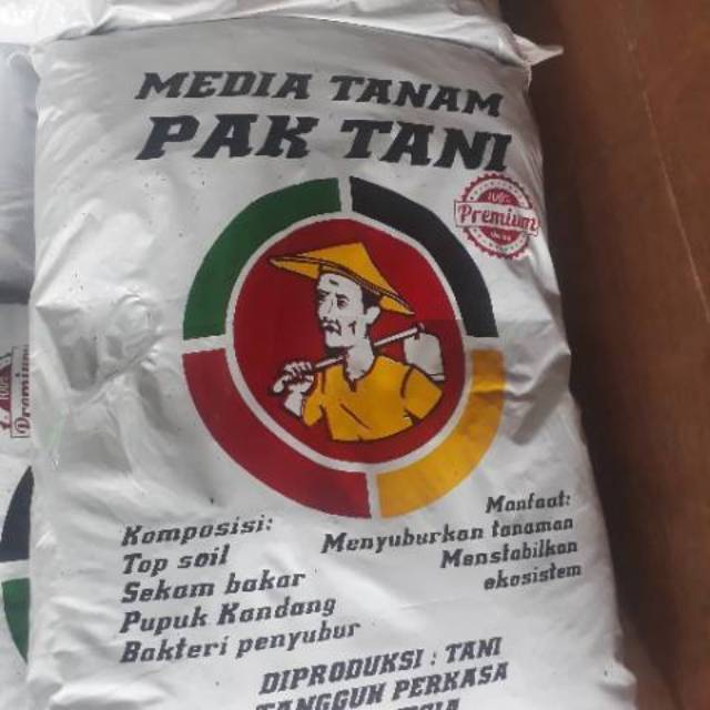 KEMASAN BARU YAMedia tanam cap pak tani ukuran besar yaHanya bisa di angkut dengan gojek dan grab aja yaMaksimal 2 karung satu gojek/grabMenanam dengan aman dan subur, karena bebas jamur & kimiaKomposisi:Daun teh, tanah subur, pupuk kandang, kompos, materi penyuburBermanfaat:merangsang pertumbuhan daun, bunga, buah, dan memperbaiki ekosistemAturan Pakai:Dapat dipakai lan
