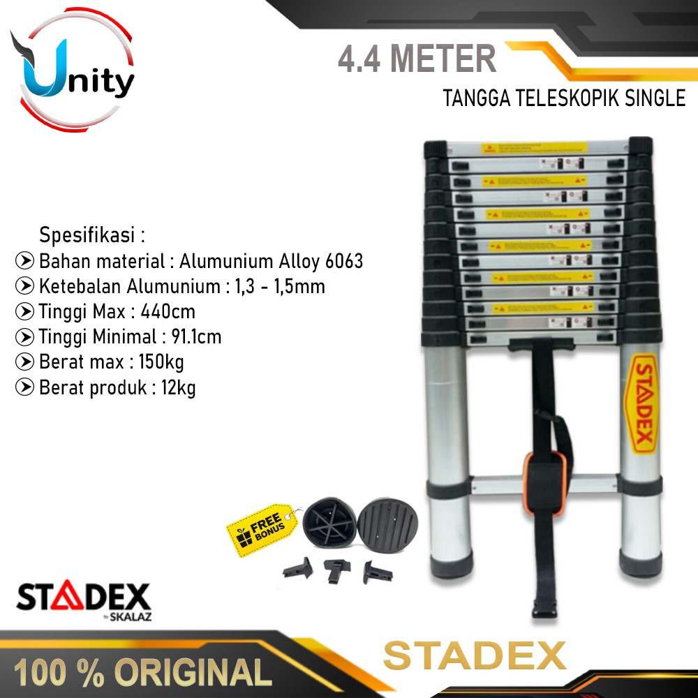 Sertifikasi EN-131 European Ladder Certification Standart“ STADEX “-( Merk sudah terdaftar di-DJKI )-( Juga ada Surat Sertifikasi Uji Kelayakan Pakai )“ Free Spare Parts “1.Alas karet kaki tangga ( 2pcs )2.Pengunci tangga ( 3pcs )Tangga yang cocok untuk membantu anda dalam menjalankan sebuah kegiatanSpesifikasi produk :•Bahan Material : Alumunium Alloy 6063•Ketebalan Alumunium : 1,3 mm s/d 1,5 mm•Tinggi Maximal : 440 Centimeter•Tinggi Minimal : 91.1 Centimeter•Jarak Bentang Anak Tangga : 35,5 Centimeter•Berat Beban Maximal : 150 Kg•Berat Produk : 12 Kg•Berat Produk + Dimensi : 14 KgKami selalu memposisikan diri kami sebagai konsumen , Kualitas dan kelengkapan selalu kami cek sebelum kami pasarkan.Open Dealer / Distributor Per-wilayah Kota Madya / KabupatenJika minat silahkan awali chat dengan awalan kalimat“ Saya siap jadi distributor “Terima kasih ;-)#Tangga #Tanggalipat #Tanggatelescopic #Tanggaalumunium #Tanggatelkom#Tanggalipattelescopic #Tanggaalumuniumtelescopic #Tanggatiangtelkom #fiberoptic #ftth #fiberoptik #ftthtoo