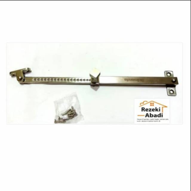 Ramskar Tarik Stainless / Tahanan Jendela / Hak Angin¬ Bahan Stainless anti karat¬ Posisi tutup ukuran 18cm¬ Posisi kebuka 30cm¬ Sebagai penahan jendela¬ Harga per