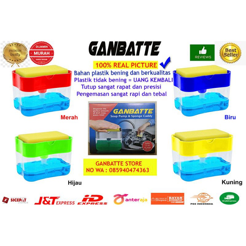 HARAP BACA DESKRIPSI!!!DISPENSER SABUN CUCI PIRING + SPONS (GANBATTE)"JANGAN TERGIUR HARGA MURAH DAN FOTO BAGUS , KARENA YG DIKIRIM BEDA DAN JELEK , SEDANGKAN MEREK GANBATTE MENJUAL KUALITAS DENGAN HARGA TERJANGKAU"* Desain inovatif* Kualitas tinggi* Menggunakan bahan plastik pilihan* Warna bervariasi * Dispenser sabun ini SANGAT² PRAKTIS DAN MENGHEMAT PENGGUNAAN SABUN CUCI PIRING ANDA!* KAPASITAS MENAMPUNG SABUN BESAR* TIDAK PERLU MENUANG SABUN CUCI PIRING DI WADAH TERBUKA SEHINGGA MENJADI MUBAZIRKEGUNAAN :1. Membuat spons anda menjadi bersih karena Wadah sabun dan spons terpisah 2. Pemakaian lebih mudah karena anda tinggal pencet . sabun cuci piring anda tidak terkontaminasi oleh kotoran 3. Dirancang lebih cepat mencuci piring APA BEDANYA DENGAN DISPENSER SABUN CUCI PIRING MEREK LAINNYA??- BARANG YANG KITA KIRIM SESUAI FOTO DAN BERLABEL "GANBATTE" - BARANG KITA LEBIH PRESISI - TUTUP TIDAK MUDAH LEPAS- PENCETAN SANGAT EMPUK - BARANG KITA SEBENING KACA DAN ELEGANT ( BEDA DENGAN PRODUK LAINNYA YANG FOTO DAN BARANG REAL TIDAK SESUAI)- PRODUK INI TERJANGKAU TAPI TIDAK MURAHAN - GARANSI 1000% JIKA BARANG YANG DIKIRIN TIDAK SESUAI FOTO ( syarat baca sampai akhir deskripsi) PROSES PENGIRIMAN DAN STOCK- BARANG AKAN SELALU KAMI CHECK SEBELUM DIKIRIM (NO RETUR , - JIKA BARANG YANG DIKIRIM TIDAK SESUAI FOTO HARAP MENGIRIMKAN VIDEO UNBOXING ( BUKA PAKET) , FOTO RESI , DAN KASIH BINTANG 5 TERLEBIH DAHULU - JIKA TIDAK MEMENUHI SYARAT KLAIM DIATAS , KAMI TIDAK MENERIMA KLAIM DALAM BENTUK APAPUN- MINGGU TIDAK ADA PENGIRIMAN - UNTUK KEAMANAN PAKET KAMI SUDAH BERIKAN BUBBLE WRAP. SUPAYA LEBIH AMAN DISARANKAN WAJIB MENAMBAH BUBBLE WRAP YANG ADA DI ETALASE KAMI ( GANBATTE STORE ID) - JIKA BARANG YANG DATANG PECAH, TOKO TIDAK BERTANGGUNG JAWAB TERHADAP KERUSAKAN - READY STOCK SELAMA BISA DI KLIK PILIHAN WARNANYA ISI PAKET 1. DISPENSER SABUN CUCI PIRING 1.