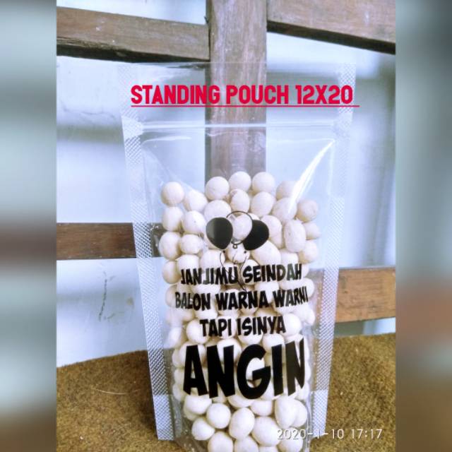 Kemasan Standing Pouch dilengkapi dg seal lebar dan klip buka tutup menjadikan kemasan produk mu tambah keren Ukuran 12x20 ya Untuk makanan/snack - +100gr (menyesuaikan jenis makanan/snack) Untuk cairan - +400ml (Tidak Di Rekomendasikan) Karena Rawan Bocor Harga 20rb isi 50pcs Sudah bersablon kata-kata baper (Sablon campur menyesuaikan stok yg